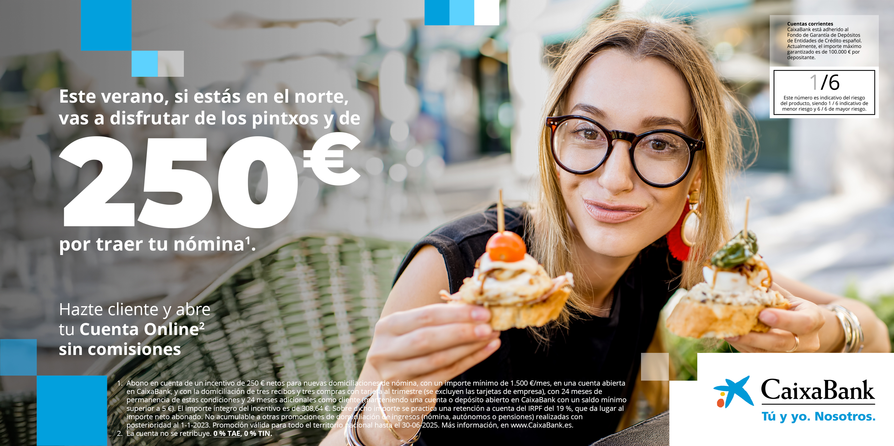 CaixaBank es consciente de que, con la llegada del verano, la oferta turística en el norte genera un aumento significativo en el número de empleos. Por ello, ideamos una campaña de captación de nuevos clientes, centrada en los atractivos del norte, tanto para los turistas como para los trabajadores temporales, con el objetivo de incentivar a estos últimos a domiciliar su nómina a cambio de un regalo de 250 euros.